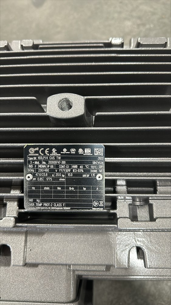 20HP RPM:74 VOLT:230/460 AMPS:47.6/23.8 GEAR MOTOR