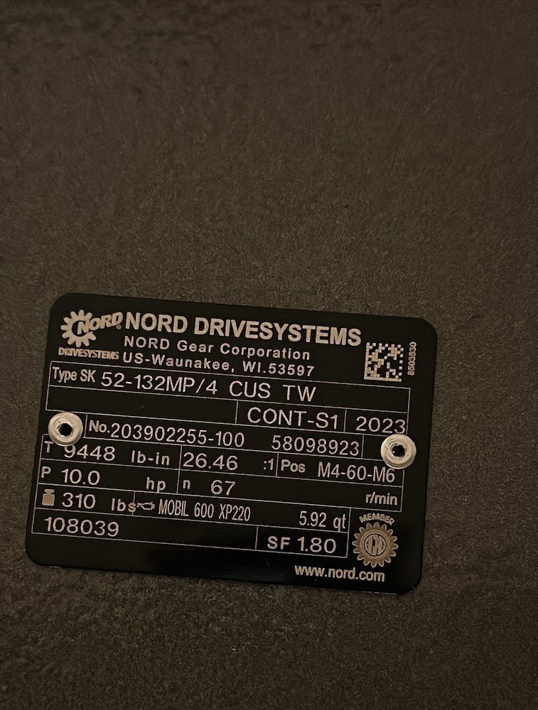 HP:10 RPM:67 VOLT:230/460 AMPS:26.7/13.4 GEAR MOTOR