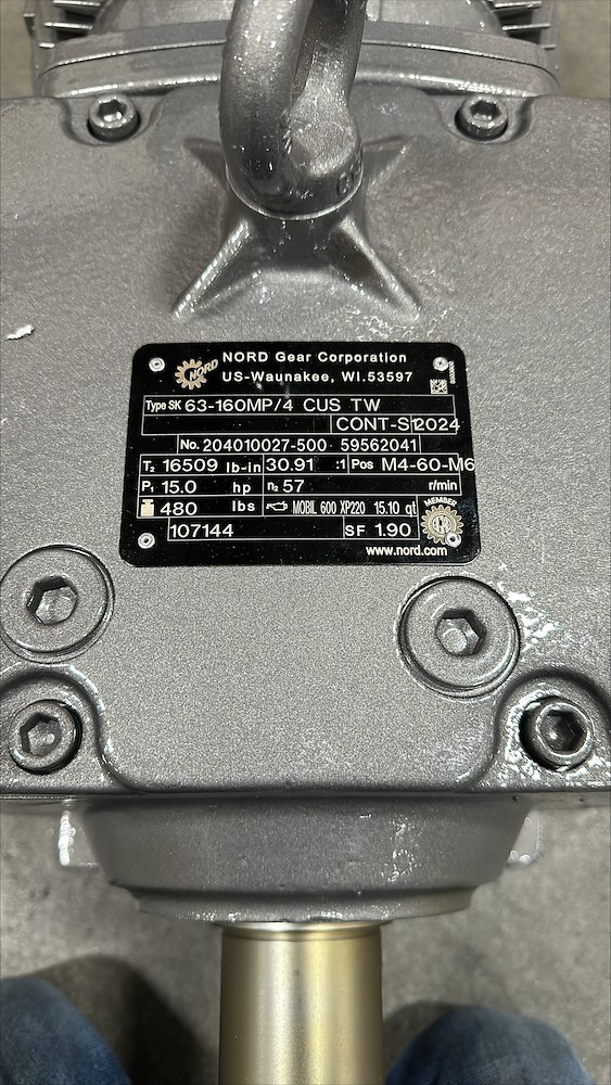 HP:15 RPM:57 VOLT:230/460 AMPS:35.6/17.8 GEAR MOTOR