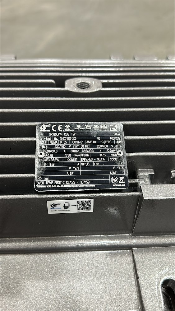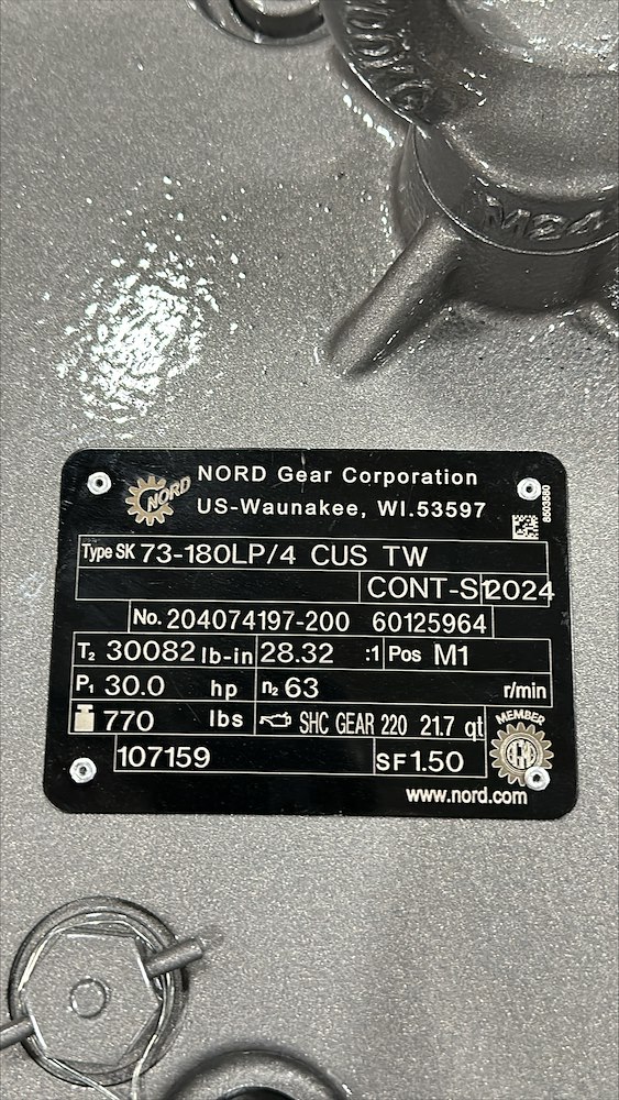 HP:30 RPM:63 VOLT:230/460 AMPS:69.6/34.8 GEAR MOTOR